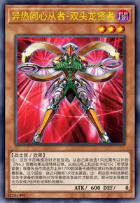 ①:把这张卡2个超量素材取除才能发动。从卡组把1只「异热同心武器」怪兽或者「异热同心从者」怪兽特殊召唤。这个效果的发动后,直到回合结束时自己不是超量怪兽不能从额外卡组特殊召唤,不用「No.」怪兽不能攻击。