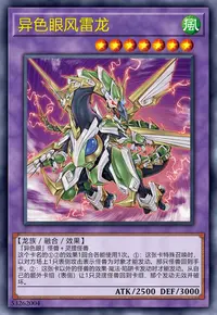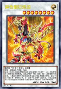 ②:这张卡战斗破坏怪兽时才能发动。除「异色眼上级龙」外的1只5星以上的怪兽从自己的手卡·墓地守备表示特殊召唤。