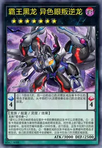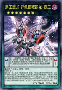 自己对「霸王黑龙 异色眼叛逆龙-霸王」1回合只能有1次特殊召唤。这张卡也能在自己场上的「叛逆」超量怪兽上面重叠来超量召唤,7星可以灵摆召唤的场合在额外卡组的表侧的这张卡可以灵摆召唤。