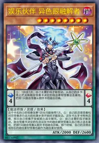 ①:以自己墓地1张「娱乐伙伴」卡或者「异色眼」卡为对象才能发动。那张卡加入手卡。那之后,这张卡破坏。
