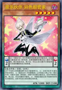 ①:这张卡召唤·特殊召唤成功的场合才能发动。从卡组把「娱乐伙伴 异色眼贴身男仆」以外的1只「娱乐伙伴」怪兽或者「异色眼」怪兽送去墓地。这张卡的等级直到回合结束时变成和送去墓地的怪兽的等级相同。