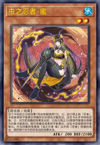 ②:对方把怪兽的效果发动时,以自己场上1只里侧守备表示怪兽为对象才能发动。那只怪兽变成表侧守备表示,这张卡变成里侧守备表示。作为对象的怪兽是「虫之忍者-蜜」以外的「忍者」怪兽的场合,再把那个对方的所发动的效果无效。