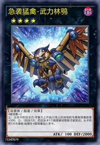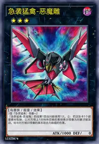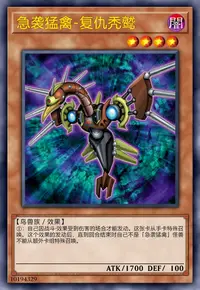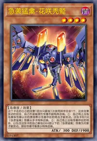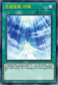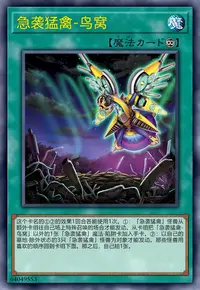 ②:这张卡战斗破坏对方怪兽的回合的自己主要阶段2才能发动。从卡组把1张「升阶魔法」速攻魔法卡加入手卡。这个效果的发动后,直到回合结束时自己不是「急袭猛禽」怪兽不能特殊召唤。