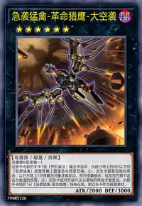 ①:这张卡超量召唤的场合才能发动。对方场上的卡全部破坏。那之后,这张卡有「急袭猛禽」超量怪兽3种类以上在作为素材的场合,给与对方这个效果破坏的怪兽的原本攻击力合计数值的伤害。