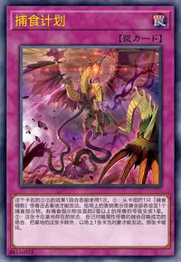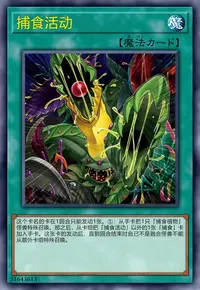 ①:从手卡把1只「捕食植物」怪兽特殊召唤。那之后,从卡组把「捕食活动」以外的1张「捕食」卡加入手卡。这张卡的发动后,直到回合结束时自己不是融合怪兽不能从额外卡组特殊召唤。