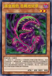 ①:自己准备阶段把墓地的这张卡除外,以自己墓地2只4星以下的「捕食植物」怪兽为对象才能发动。那些怪兽特殊召唤。这个效果的发动后,直到回合结束时自己不能通常召唤,不是融合怪兽不能特殊召唤。