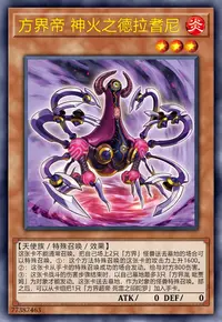 ③:这张卡战斗的伤害步骤结束时,以自己墓地最多2只「方界胤 毗贾姆」为对象才能发动。这张卡送去墓地,作为对象的怪兽特殊召唤。那之后,可以从卡组把1只「方界帝 神火之德拉耆尼」加入手卡。