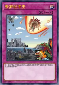 ③:对方回合,从自己墓地把包含这张卡的2只「朱罗纪」怪兽除外才能发动。从额外卡组把1只「朱罗纪陨石兽」当作同调召唤作特殊召唤。
