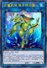 ①:把互相连接状态的这张卡解放才能发动。从自己墓地选「计量机块 电子秤河童」以外的1只「机块」连接怪兽特殊召唤。