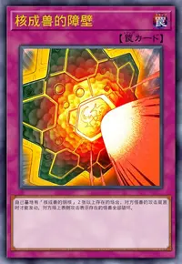 从卡组把「核成兽的金刚核」以外的1张名字带有「核成」的卡加入手卡。此外,自己的主要阶段时把墓地的这张卡从游戏中除外才能发动。这个回合,自己场上的名字带有「核成」的怪兽不会被破坏。