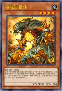 这张卡不能通常召唤。从自己手卡把1张「核成兽的钢核」从游戏中除外的场合可以特殊召唤。这张卡的控制者在每次自己的结束阶段从手卡把1张「核成兽的钢核」或1只名字带有「核成」的怪兽送去墓地。或者都不进行让这张卡破坏。1回合1次,自己的主要阶段时可以选择对方场上存在的1张卡破坏。