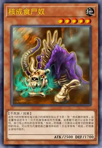 这张卡的控制者在每次自己的结束阶段从手卡把1张「核成兽的钢核」送去墓地或把手卡1只不死族怪兽给对方观看。或者都不进行让这张卡破坏。自己场上存在的名字带有「核成」的怪兽1只被战斗或者卡的效果破坏的场合,可以作为代替把自己墓地存在的1只名字带有「核成」的怪兽从游戏中除外。