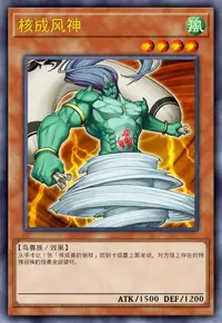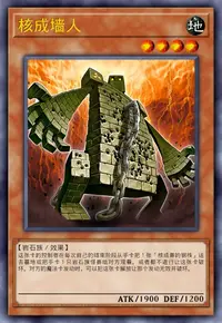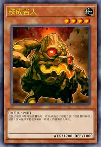 场上表侧表示存在的名字带有「核成」的怪兽在结束阶段时被破坏的场合,可以作为代替把这张卡破坏。此外,场上表侧表示存在的名字带有「核成」的怪兽在结束阶段时被破坏时,可以在自己场上把1只「核成衍生物」(岩石族·地·4星·攻/守1800)特殊召唤。