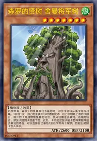 这张卡召唤成功时,可以把自己卡组最上面的卡翻开。翻开的卡是植物族怪兽的场合,那只怪兽送去墓地。不是的场合,那张卡回到卡组最下面。此外,卡组的这张卡被卡的效果翻开送去墓地的场合,可以从卡组选1张名字带有「森罗」的卡在卡组最上面放置。