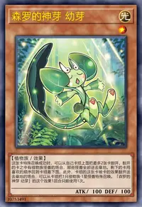 这张卡特殊召唤成功时,可以从自己卡组上面把最多2张卡翻开。翻开的卡之中有植物族怪兽的场合,那些怪兽全部送去墓地。剩下的卡用喜欢的顺序回到卡组最下面。此外,卡组的这张卡被卡的效果翻开送去墓地的场合,可以从卡组把1只植物族·1星怪兽特殊召唤。「森罗的神芽 幼芽」的这个效果1回合只能使用1次。