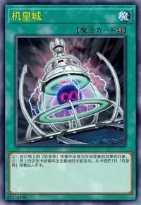 ①:以自己墓地3只「机皇」怪兽为对象才能发动(同名卡最多1张)。那些怪兽加入手卡或无视召唤条件特殊召唤。这张卡的发动后,直到下次的自己回合的结束时自己不是机械族怪兽不能特殊召唤。
