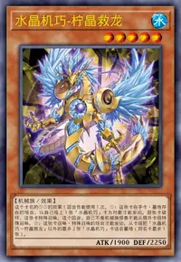 ①:这张卡在手卡·墓地存在的场合,从手卡把「水晶机巧-柠晶龙」以外的1张「水晶机巧」卡丢弃才能发动。这张卡守备表示特殊召唤。那之后,自己场上1张卡破坏。