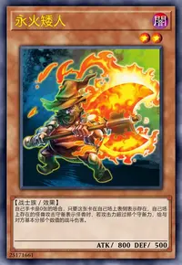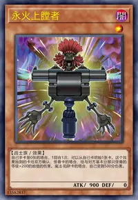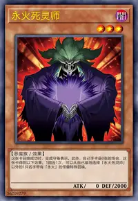 这张卡召唤成功时,变成守备表示。此外,自己手卡是0张的场合,这张卡得到以下效果。1回合1次,可以从自己墓地选择「永火死灵师」以外的1只名字带有「永火」的怪兽特殊召唤。