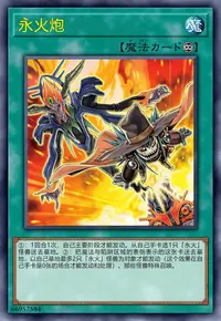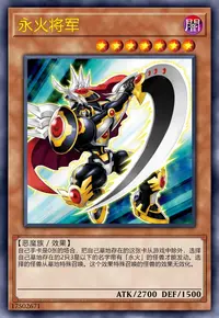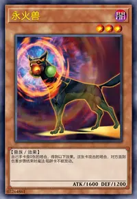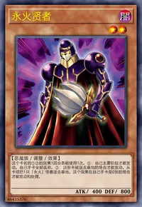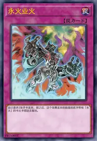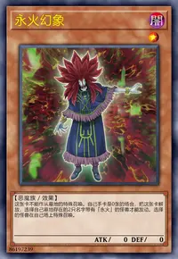 这张卡不能作从墓地的特殊召唤。自己手卡是0张的场合,把这张卡解放,选择自己墓地存在的2只名字带有「永火」的怪兽才能发动。选择的怪兽在自己场上特殊召唤。