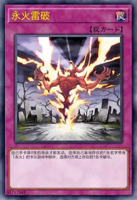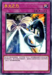 自己手卡是0张的场合,名字带有「永火」的怪兽被选择作为攻击对象时才能发动。把1只攻击怪兽破坏,选择自己墓地存在的1只名字带有「永火」的怪兽特殊召唤。
