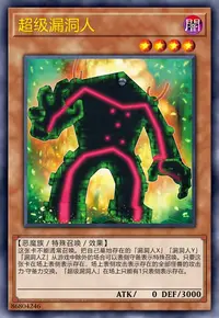 这张卡不能通常召唤。把自己墓地存在的「漏洞人X」「漏洞人Y」「漏洞人Z」从游戏中除外的场合可以表侧守备表示特殊召唤。只要这张卡在场上表侧表示存在,场上表侧攻击表示存在的全部怪兽的攻击力·守备力交换。「超级漏洞人」在场上只能有1只表侧表示存在。