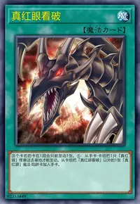 ①:从手卡·卡组把1只「真红眼」怪兽送去墓地才能发动。从卡组把「真红眼看破」以外的1张「真红眼」魔法·陷阱卡加入手卡。