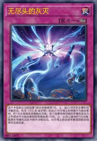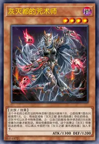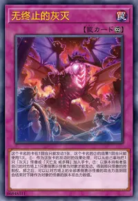 ①:让「灰灭的复燃」以外的自己的墓地·除外状态的1张「灰灭」卡回到卡组最下面,以对方场上1只效果怪兽为对象才能发动。那只怪兽的效果直到回合结束时无效。