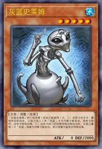①:对方怪兽的直接攻击宣言时才能把这个效果发动。自己场上没有怪兽存在的场合,从卡组把1只「灰篮」怪兽攻击表示特殊召唤。