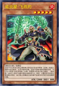 这张卡可以把自己场上表侧表示存在的3张名字带有「炎舞」的魔法·陷阱卡送去墓地,从手卡特殊召唤。这张卡召唤·特殊召唤成功时,可以从卡组选1张名字带有「炎舞」的陷阱卡在自己场上盖放。「威炎星-飞燕灼」的这个效果1回合只能使用1次。此外,只要这张卡在场上表侧表示存在,自己场上的兽战士族怪兽不会成为对方的卡的效果的对象。