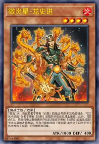 1回合1次,自己把名字带有「炎舞」的魔法·陷阱卡发动的场合,可以从卡组选1张名字带有「炎舞」的陷阱卡在自己场上盖放。此外,1回合1次,把自己场上表侧表示存在的2张名字带有「炎舞」的魔法·陷阱卡送去墓地才能发动。从自己墓地选择「微炎星-龙史进」以外的1只名字带有「炎星」的怪兽特殊召唤。