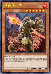 这张卡被战斗破坏送去墓地时,可以从自己卡组选择2只名字带有「熔岩」的怪兽送去墓地。