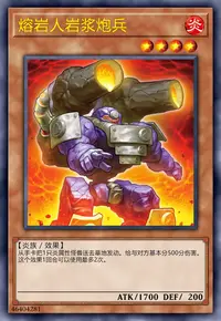 这张卡召唤成功时,自己墓地有「熔岩炮击手」以外的名字带有「熔岩」的怪兽存在的场合,从自己卡组上面把最多5张卡送去墓地才能发动。这张卡的攻击力上升因为这个效果发动而送去墓地的名字带有「熔岩」的怪兽数量×200的数值。