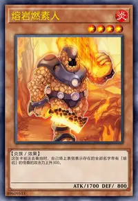这张卡同调召唤成功时,自己把1张手卡送去墓地。这张卡被卡的效果破坏的场合,可以作为代替把自己墓地存在的1只名字带有「熔岩」的怪兽从游戏中除外。