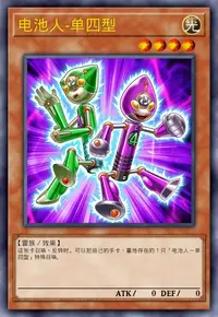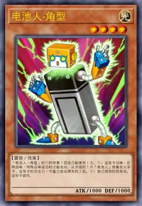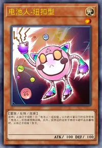 反转:从自己卡组把1只「电池人-纽扣型」以外的4星以下的名字带有「电池人」的怪兽特殊召唤。此外,反转过的这张卡被战斗破坏送去墓地时,从自己卡组抽1张卡。
