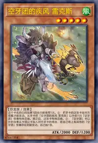 ①:把手卡的这张卡给对方观看才能发动。从手卡把「空牙团的疾风 雷克斯」以外的1只「空牙团」怪兽特殊召唤。那之后,这张卡特殊召唤。