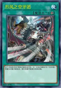 ①:自己场上没有怪兽存在的场合才能发动。从卡组把1只4星以下的「空牙团」怪兽特殊召唤。对方场上有怪兽2只以上存在的场合,可以再从卡组把1只「空牙团」怪兽特殊召唤。这个回合,自己不是「空牙团」怪兽不能特殊召唤。