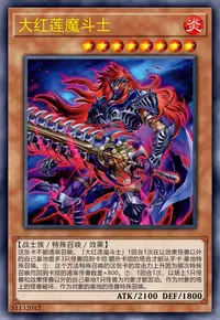 这张卡不能通常召唤。「大红莲魔斗士」1回合1次在让效果怪兽以外的自己墓地最多3只怪兽回到卡组·额外卡组的场合才能从手卡·墓地特殊召唤。