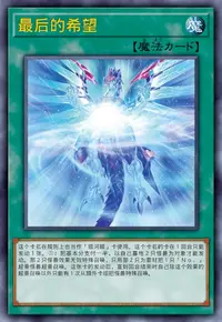 ①:自己场上没有怪兽存在的场合,以自己墓地1只「No.」超量怪兽为对象才能发动。那只怪兽特殊召唤。那之后,自己从卡组抽1张。