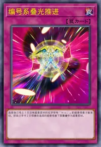 选择自己场上1只没有超量素材的名字带有「No.」的超量怪兽才能发动。把自己手卡2只怪兽在选择的超量怪兽下面重叠作为超量素材。