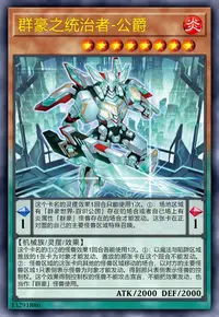 ①:自己主要阶段才能发动。这张卡在正对面的自己的主要怪兽区域特殊召唤。这个效果的发动后,直到回合结束时自己不是「群豪」怪兽不能特殊召唤(除从额外卡组的特殊召唤外)。