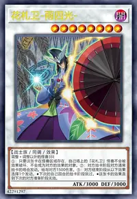 ①:自己场上有7星以下的「花札卫」怪兽存在的场合才能发动。这张卡从手卡特殊召唤。这个效果的发动后,直到回合结束时自己不是「花札卫」怪兽不能召唤·特殊召唤。