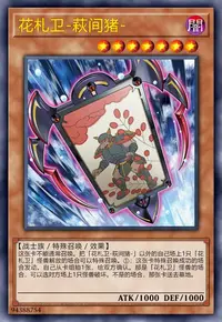 这张卡不能通常召唤。把「花札卫-萩间猪-」以外的自己场上1只「花札卫」怪兽解放的场合可以特殊召唤。