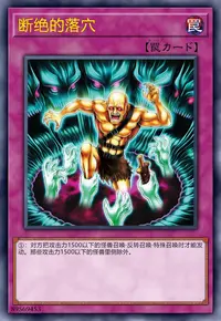 ①:对方对怪兽的特殊召唤成功的回合,以对方场上1只攻击力2000以上的怪兽为对象才能发动。那只怪兽破坏。那之后,自己墓地有「洞」通常陷阱卡或者「落穴」通常陷阱卡存在的场合,可以从对方墓地选1只怪兽除外。