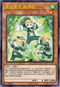 ①:这张卡作为「调皮宝贝」怪兽的所用融合素材或者所用连接素材送去墓地的场合才能发动。从卡组把「调皮宝贝·脉冲娃」以外的1张「调皮宝贝」卡送去墓地。那之后,可以从手卡·卡组把「调皮宝贝·脉冲娃」以外的1只「调皮宝贝」怪兽守备表示特殊召唤。
