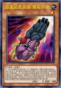①:自己主要阶段以自己场上1只「超重武者」怪兽为对象才能发动。自己的手卡·场上的这只怪兽当作守备力上升1000的装备卡使用给那只怪兽装备。