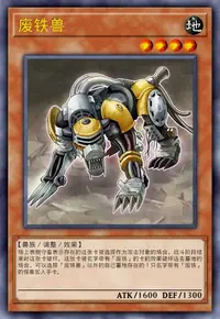 场上表侧守备表示存在的这张卡被选择作为攻击对象的场合,战斗阶段结束时这张卡破坏。这张卡被名字带有「废铁」的卡的效果破坏送去墓地的场合,可以选择「废铁兽」以外的自己墓地存在的1只名字带有「废铁」的怪兽加入手卡。