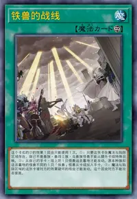 ●从自己墓地把「铁兽」卡任意数量除外才能发动。把持有和除外数量相同数量的连接标记的1只「铁兽」连接怪兽从额外卡组无视召唤条件特殊召唤。这个回合,自己不是兽族·兽战士族·鸟兽族怪兽不能从额外卡组特殊召唤。