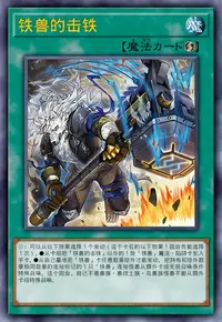 ②:从自己的手卡·场上把1只怪兽送去墓地才能发动。原本种族和送去墓地的怪兽不同的1只「铁兽」怪兽从卡组加入手卡。