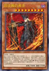 只要这张卡在场上表侧表示存在,对方不能把这张卡作为卡的效果的对象。此外,1回合1次,把手卡或者自己场上表侧表示存在的1只炎属性怪兽送去墓地才能发动。这个回合,这张卡不会被卡的效果破坏。这个效果在对方回合也能发动。