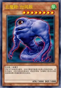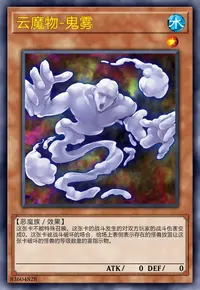 这张卡不会被战斗破坏。这张卡表侧守备表示在场上存在的场合,这张卡破坏。这张卡的召唤成功时,给这张卡放置场上存在的名字带有「云魔物」的怪兽数量的雾指示物。可以把这张卡放置的雾指示物取除2个,场上1张魔法或者陷阱卡破坏。